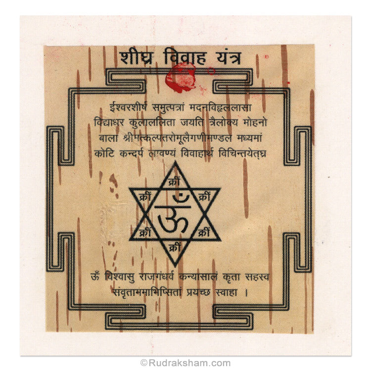 Shighra Vivah Yantra on Bhoj Patra, Shighra Vivah Yantra is to boost your chances for getting married. Shighra Vivah Yantra works miracles and results in Quick Marriage.