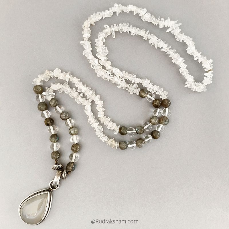 Listings in this section are beautiful Designer handcrafted Mala Necklaces / Rosaries made with Rudraksha beads and Gemstone Beads of various shapes along with beautiful tassel in different colors. You can choose these unique Malas as Gift for your close ones on various occasions.