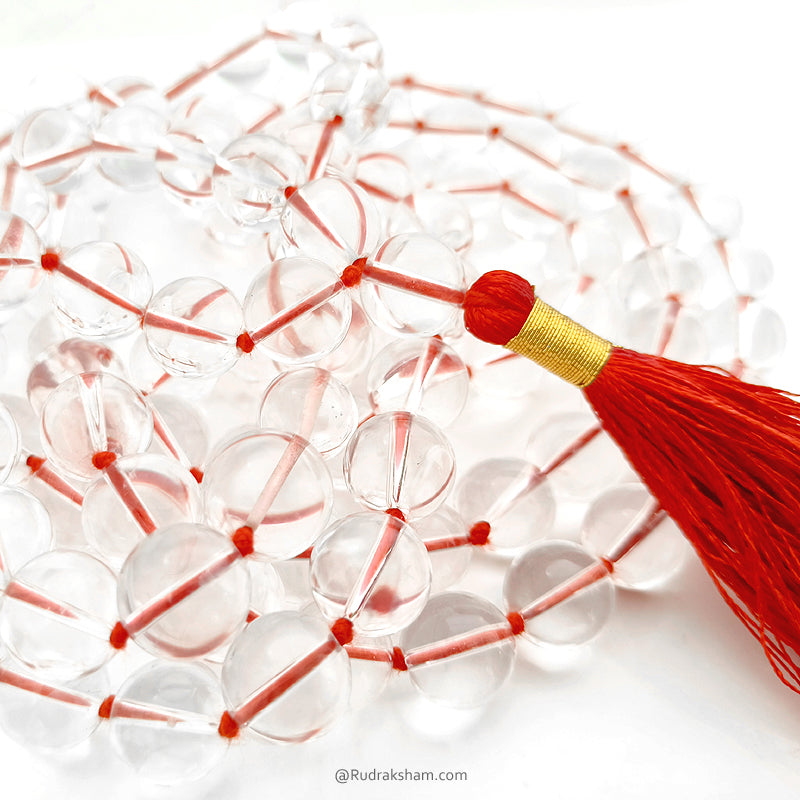 Sphatik / Crystal / Quartz Stone Mala (12 mm) with Tassel (108+1) Beads
