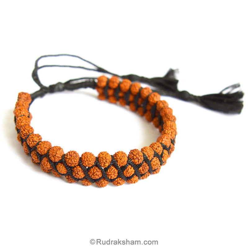Wrist Band Details : This Bracelet is made of 3 lines of small 5 Mukhi Rudraksha Beads of size 6.50 mm strung in a strong Black thread with tassel. 3 Layered Rudraksha Beads handcrafted.