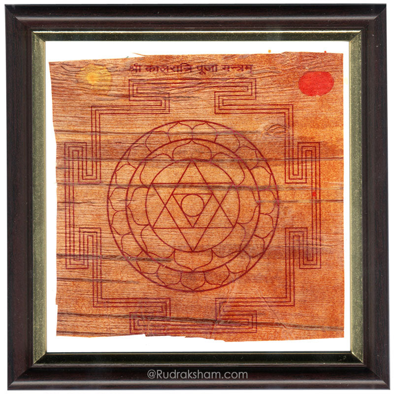 Kal Ratri Puja Yantra on Bhoj Patra. This Yantra is used for getting underground treasures, for Tantra Vidhya, helping others in troubles, to clear Untimely death, to remove death-inflicting diseases. Use of the Yantra help in achieving above task. Particular usage is possible with the help of Expert Tantrik only.