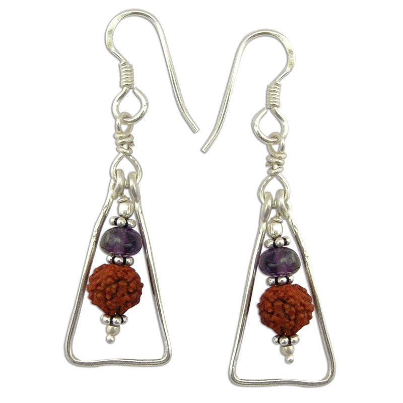 Earring Details : Amethyst Gemstone and Rudraksha Beads