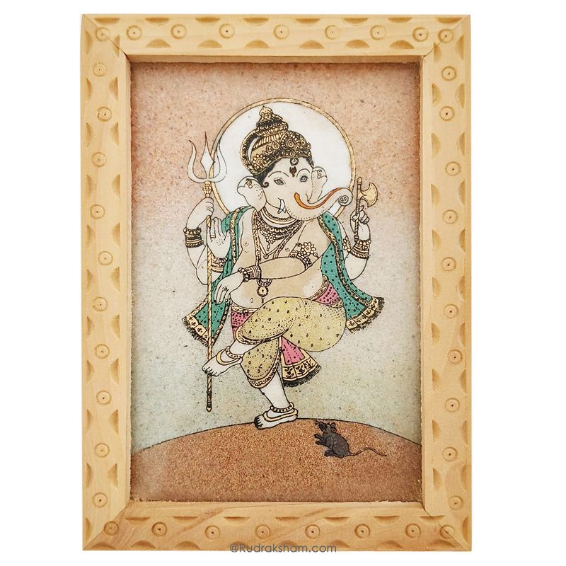 Ganesha Gemstone Paintings | Rajasthani Gem Stone Picture with Wooden Frame