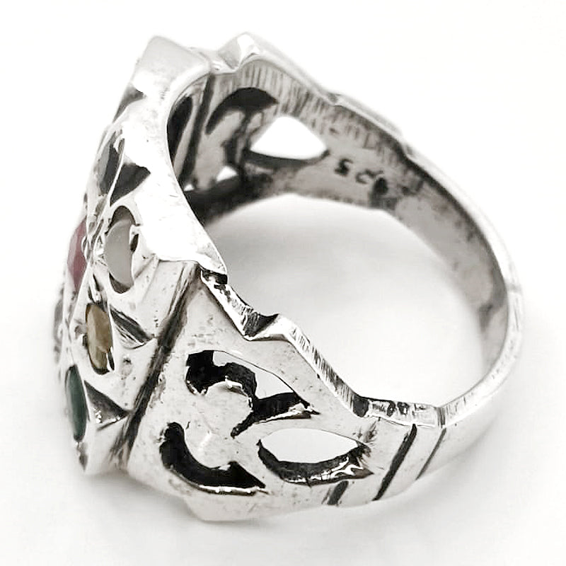 Ring Details : Navratna Ring containing 9 Gem Stones in Silver.