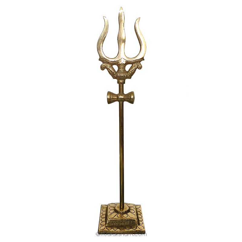 Brass Trishul with Damroo and Stand | Brass Trident with Monkey Talking Drum | Lord Shiva's Trident | Trishool