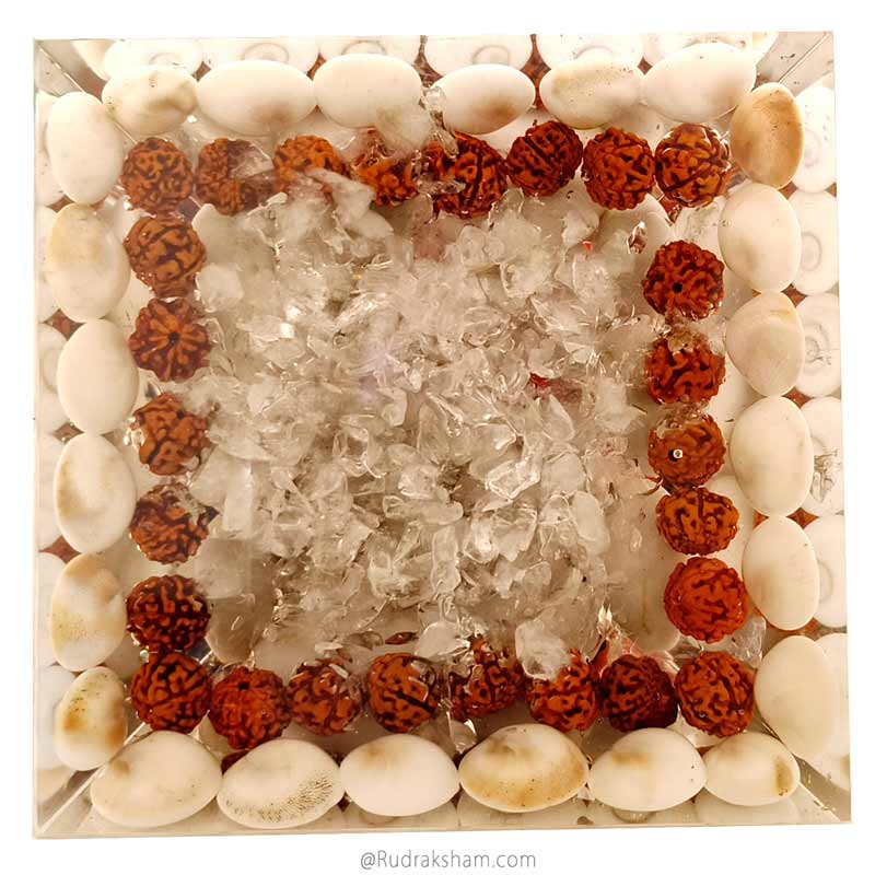 This beautiful pyramid is generally known as the ‘ Wealth Pyramid ’ as it is a combination of a few auspicious things like- Shri Yantra, Gomati Chakra, White kauri, Ratti seeds, Copper Coil and Rudraksha beads. This pyramid guides you in your journey of spiritual growth. All these auspicious things used in this pyramid are associated with Goddess Lakshmi hence it is also known as ‘Lakshmi Pyramid’. This Pyramid helps attract prosperity, success, wealth and new opportunities, enhances spiritual growth and protects from negative energies.