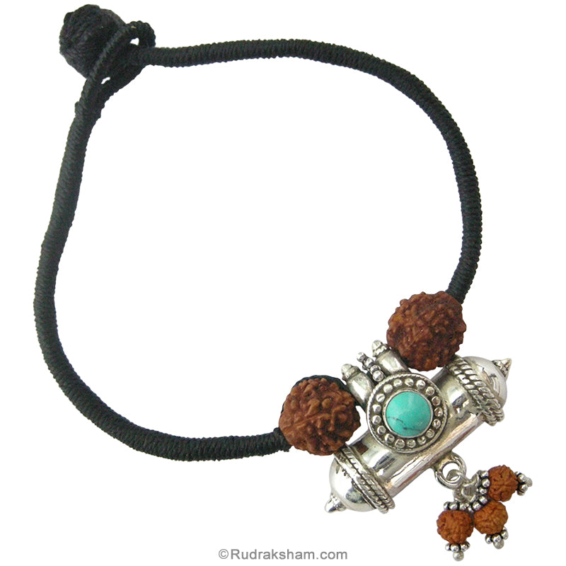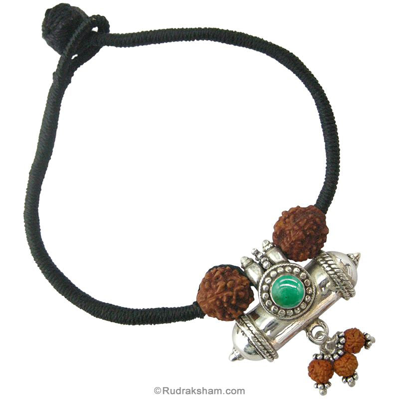 Kavach : Silver Kavach Filled with Mangal Yantra, 8 Mukhi Rudraksha Yantra and 11 Mukhi Rudraksha Yantra on Bhoj Patra. The color of the stone on the center of the kavach may vary according to the availability. The stone has no astrological significance
