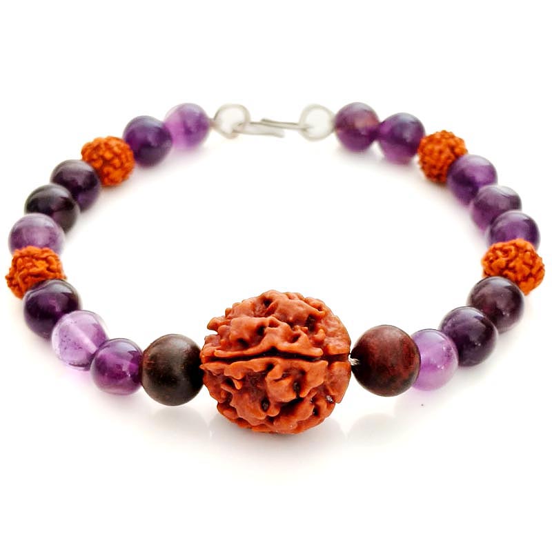 The Saraswati Viveka Bracelet: 4 Mukhi, Amethyst & Red Sandalwood for Mental Clarity