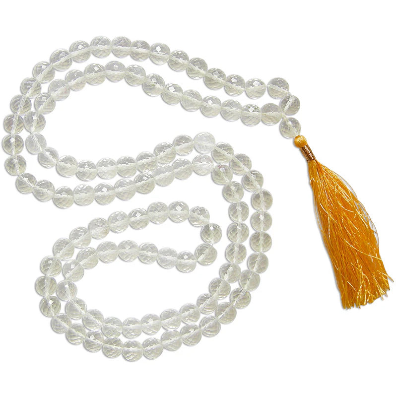 7 mm Sphatik Diamond Cut Stone Beads Mala Necklace | Original and Natural Sphatik / Crystal / Quartz High Grade Diamond Cut Gemstone Rosary | 108 + 1 Beads