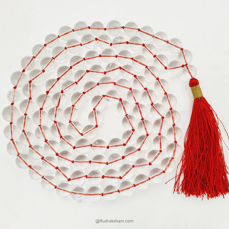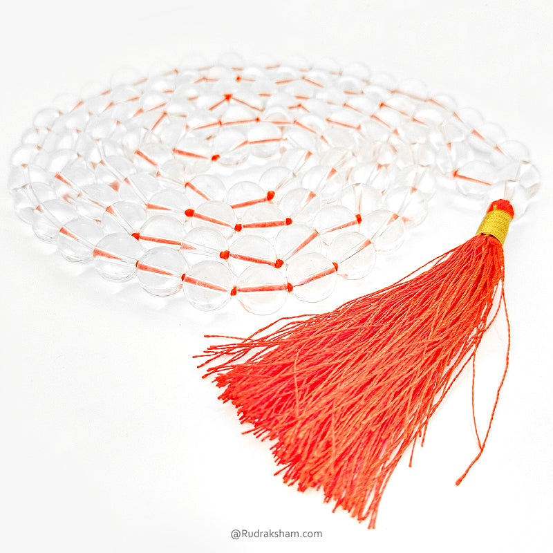 Sphatik / Crystal / Quartz Stone Mala (12 mm) with Tassel (108+1) Beads