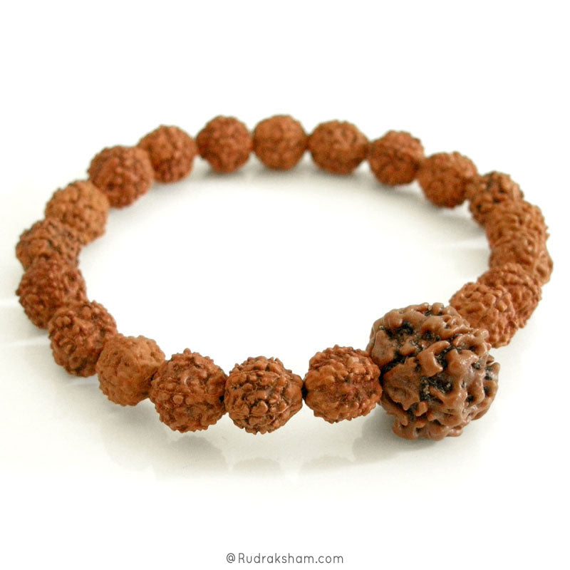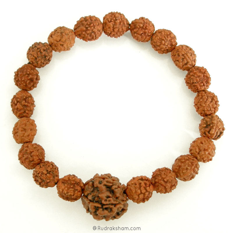 Band Details : It is a very special and most powerful Bracelet made of a selection of One bead of 4 ( Char ) Mukhi Nepali Rudraksha and 20 Small 9 mm 5 mukhi Rudraksha in elastic thread. All beads used are of good variety of highest quality.